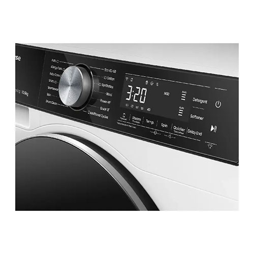 ماشین لباسشویی هایسنس WF5S1045BW دارای ظرفیت 10.5 کیلوگرمی است و از سری 5S هایسنس با رنگ بدنه سفید بوده و دستگاهی مدرن و با کارایی عالی جهت استفاده خانواده های با جمعیت متوسط 3 الی 6 نفره میباشد. این ماشین لباسشویی ترکیبی از ظرفیت بالا، مصرف انرژی و آب متناسب، امکانات هوشمند و ... است. از دسته لباسشویی های درب از جلو یا همان Front-Load به شمار می آید. دیگ موجود در این دستگاه ظرفیت بالا و تا 10 و نیم کیلویی دارد. بنابراین برای افرادی که لباس های کثیف زیادی دارند و یا کسانی که پارچه های حجیم نظیر روتختی های دو نفره و حوله های بزرگ را میخواهند شستشو دهند عالی خواهد بود. در توضیح خلاصه وار درباره بدنه و خصوصیات ظاهری که این ماشین لباسشویی دارد. این است که از بدنه مقاوم و با جنس عالی بهره مند بوده و رنگ آن سفید میباشد. ابعاد استاندارد و وزن متناسبی دارد. با توجه به طرح شیک این ماشین لباسشویی هایسنس برای قرار دادن در هر آشپزخانه و رختکنی مناسب است و با هر دکوراسیونی هماهنگی دارد. سرعت چرخش موتور آن برابر 1400 دور در دقیقه است و با وجود این سرعت چرخش دیگی که دارد توانایی آبگیری عالی در پایان چرخه شستشو دارا میباشد. از این رو زمان خشک شدن لباس ها و پارچه ها را کاهش میدهد و یک مزیت برای آن است. موتوری که شرکت هایسنس برای این ماشین لباسشویی خود به کار برده یکی از بهترین هاست و از نوع اینورتر BLDC میباشد. این موتور مصرف برق کم دارد و از دوام و ارزش کمی بهره مند است. همچنین لرزش کم از دیگر خصوصیات آن محسوب میشود. رده مصرفی که دارا بوده A است. از نظر مصرف انرژی در هر 100 چرخه شستشو که با ماشین لباسشویی هایسنس انجام میشود و در حالت Eco چیزی حدود 52 کیلو وات ساعت برق مصرف خواهد شد. همچنین از لحاظ مصرف آب این ماشین لباسشویی 10.5 کیلوی هایسنس با آب دارای دمای 60-40 سانتی گراد حدود 41 لیتر آب مصرف میشود. بنابراین این ماشین لباسشویی از نظر آب و برق دستگاهی به صرفه است. اگر بخواهیم به صورت خلاصه وار به بیان امکانات و دیگر ویژگی های این دستگاه هایسنس بپردازیم موارد ذکر شده در ادامه را نام میبریم. از دز خودکار شوینده (Auto Dosing) برای اندازه گیری دقیق مقدار پودر/مایع بهره مند است. به بخارشوی مجهز بوده و به کمک سیستم Steam / Hygiene Steam برای ضدعفونی کردن عمیق و حذف آلرژن ها برخوردار میباشد. این ماشین لباسشویی دارای 19 برنامه متنوع شستشو است و علاوه بر آن ها قابلیت اتصال به اینترنت دارد. با این ویژگی میتوان برنامه های شستشوی دیگر را دانلود کرد و بر روی ماشین لباسشویی نصب نمود. علاوه بر آن با اتصال به Wi-Fi میتوان اقدام به کنترل دستگاه از راه دور نمود.