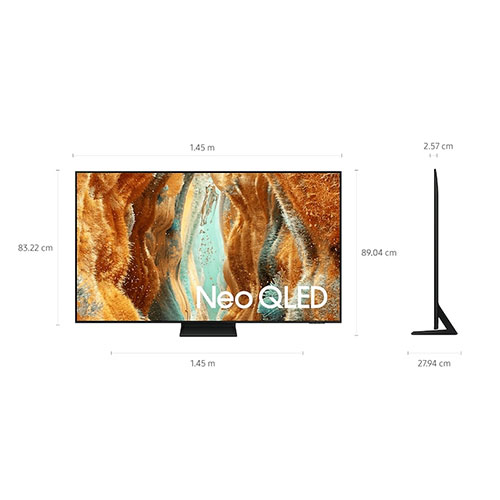 تلویزیون سامسونگ 65QN70F محصول سال ۲۰۲۵ است که از سری (Neo QLED) نئو کیو ال ای دی بوده و دارای نمایشگر ۶۵ اینچ میباشد. از این تلویزیون جهت تماشای فیلم و سریال یا همان استفاده خانگی و همچنین گیمینگ میتوان به کار برد. در مجموع تلویزیون سامسونگ مدل نئو تصویر روشن و با کیفیت و کنتراست بالا را ارائه میکند و علاوه بر آن امکانات بازی در سطح بالا را داشته و تلویزیونی هوشمند نیز محسوب میشود. برای خانواده و گیمرها یکی از بهترین هاست. دارای فناوری Quantum Mini LED و Quantum Matrix Technology Slim بوده که برای کنترل دقیق نور کاربرد دارد. سامسونگ در این دستگاه از پردازنده جدید و پیشرفته نسل دوم یعنی NQ4 Al Gen2 استفاده کرده و کارایی عالی آن برای تلویزیون سبب شده تا بیش از مدل های قبلی سامسونگ تصویر و صدای عالی داشته باشد. قابلیت ارتقا کیفیت تصویر دارد. همچنین مجهز به فناوری HDR است و روشنایی دقیق و کنتراست بالا را با خود به همراه دارد و رنگ طبیعی و وضوح بالا از دیگر مزایای ان به شمار می آید. از دیگر فرمت های آن نظیر +HDR10 پشتیبانی میکند. تلویزیون ۶۵ اینچ سامسونگ رفرش ریت مناسب داشته و برای گیمینگ نیز کاربرد دارد. از VRR و Freesync پشتیبانی میکند. دارای تصویر با کیفیت 4K است و به نقاط تیره و روشن موجود در تصویر عمق میدهد. وضوح عالی داشته و تصویر طبیعی بر روی نمایشگر ظاهر میکند. تلویزیون نئو کیولد سامسونگ ۶۵ اینچ دارای رفرش ریت 100 هرتز است و تصاویر سریع را به صورت روان و بدون تصویر گرفتگی به نمایش در می آورد. علاوه بر تصویر عالی که دارا بوده سیستم صوتی آن نیز رضایت بخش است و مجهز به سیستم صوتی دو کاناله با توان صوتی ۲۰ وات میباشد صدایی فراگیر و بدون نویز از این تلویزیون که هماهنگ با تصویرش است به گوش مخاطب میرسد. از فناوری های عالی زیادی در بخش صوتی تلویزیون سامسونگ استفاده شده است که مهم ترین آن ها میتوان به OTS Lite و Q-Symphony و Adaptive Sound Pro اشاره کرد. همچنین تلویزیون نئو کیولد سامسونگ هوشمند است. سیستم عامل تایزن در آن به کار رفته که جدیدترین نسخه بروز رسانی شده اش میباشد. این سیستم عامل رابط کاربری ساده، سریع و راحتی دارد که کار کردن با تلویزیون سامسونگ را برای هر کاربری بدون مشکل کرده است. قابلیت اتصال به اینترنت داشته و درباره هر کدام از خصوصیات تلویزیون سامسونگ در ادامه بیشتر سخن خواهیم گفت.